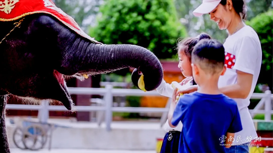 People interact with elephants and take photosTime:10:30-11:00 13:00-13:30 16:00-16:30